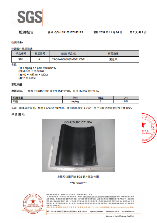| SGS reference number: | QDHL2410015716PA | Test ending date: | 2024-11-06 |